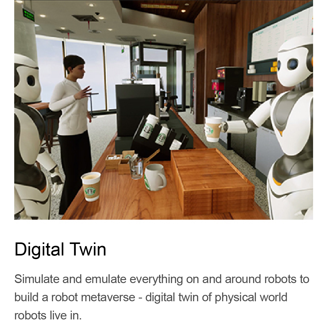 Simulate and emulate everything on and around robots to build a robot metaverse - digital twin of physical world robots live in.