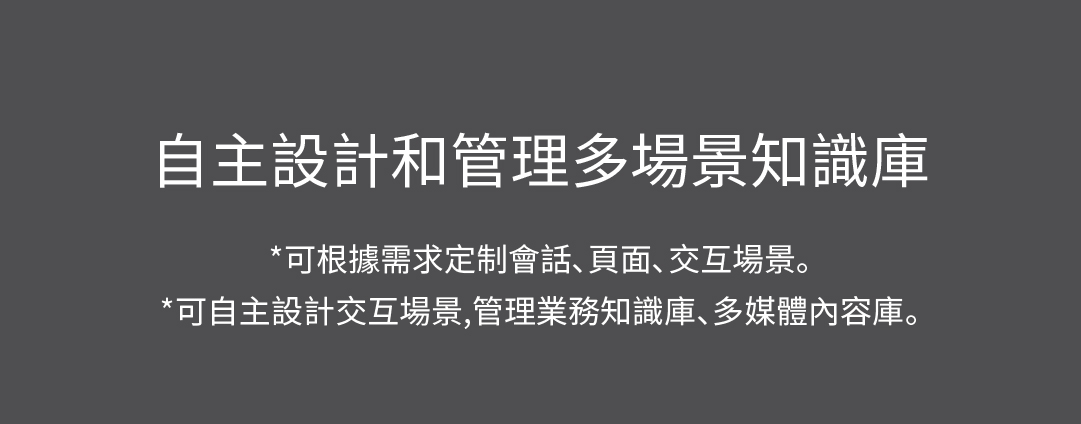 *可自主設計交互場景,管理業務知識庫、多媒體內容庫。