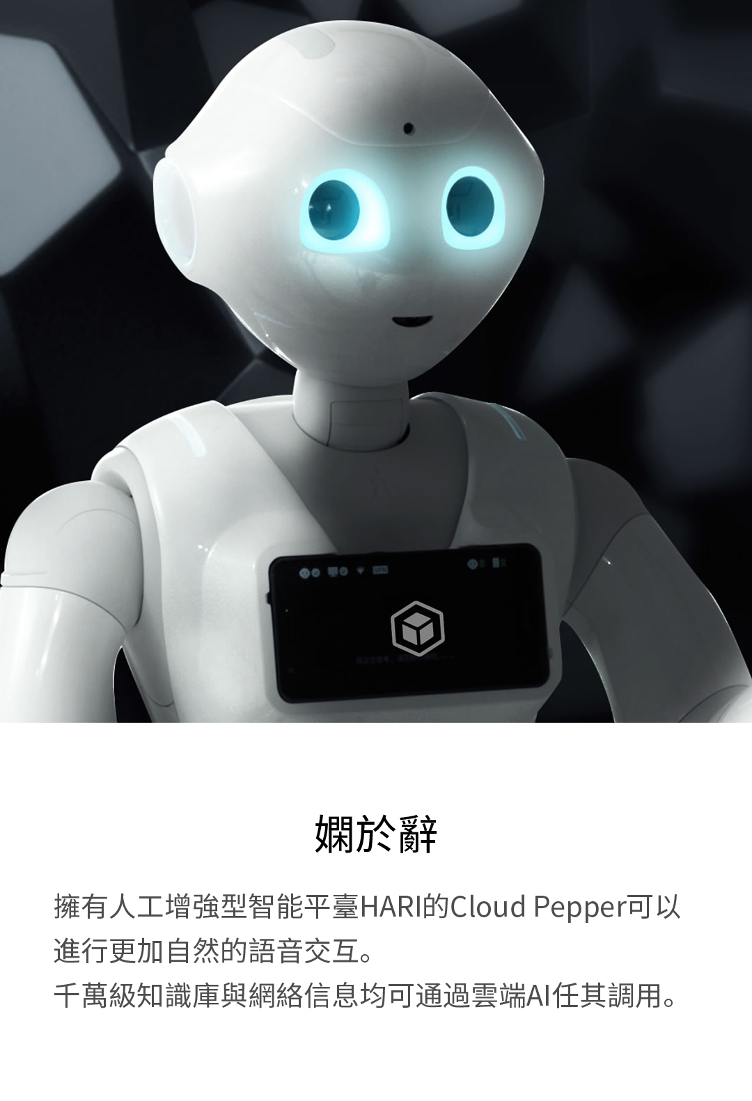 擁有人工增強型智能平臺HARIX的Cloud Pepper可以進行更加自然的語音交互。