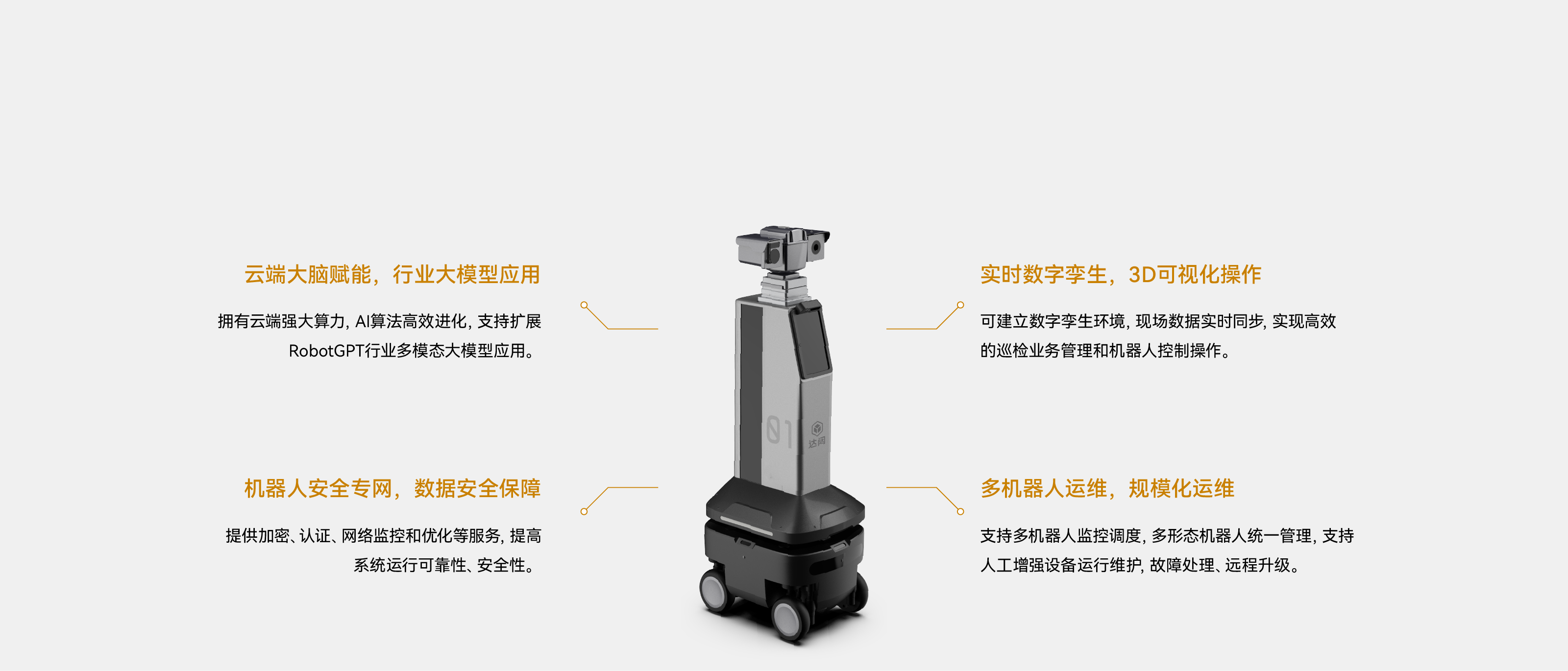 四舵輪底盤可360°全向移動,越障、爬坡、過溝能力超強;機身設計小巧,適合狹窄、復雜環境
