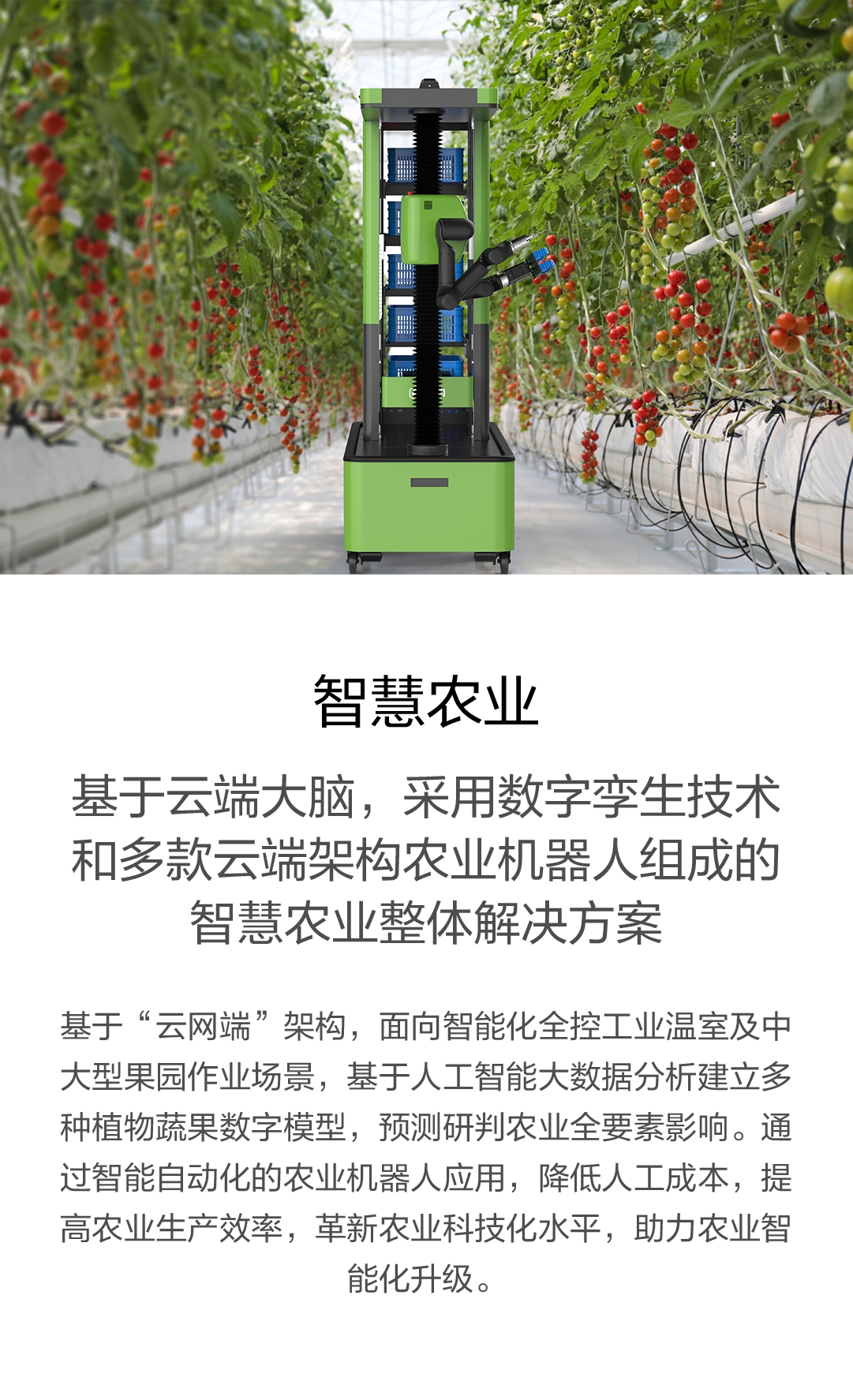 基于“云網端”架構,面向智能化全控工業溫室及中大型果園作業場景,基于人