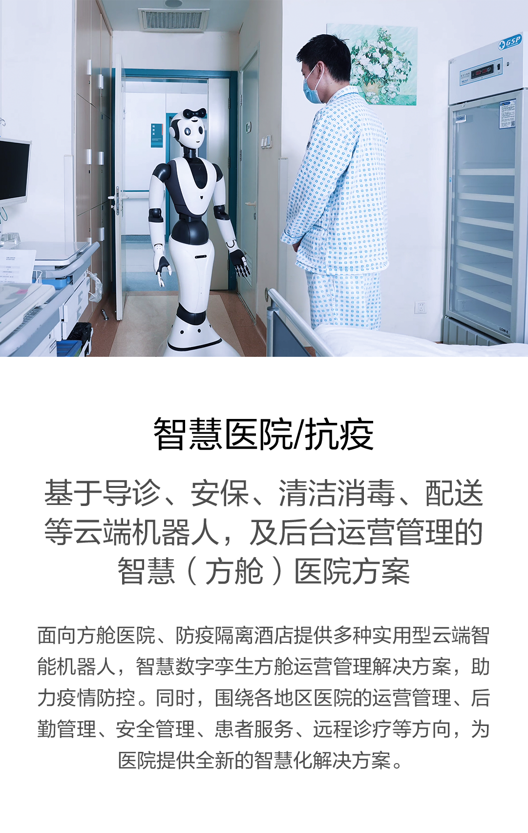 基于導診、安保、清潔消毒、配送等云端機器人,及后臺運營管理的