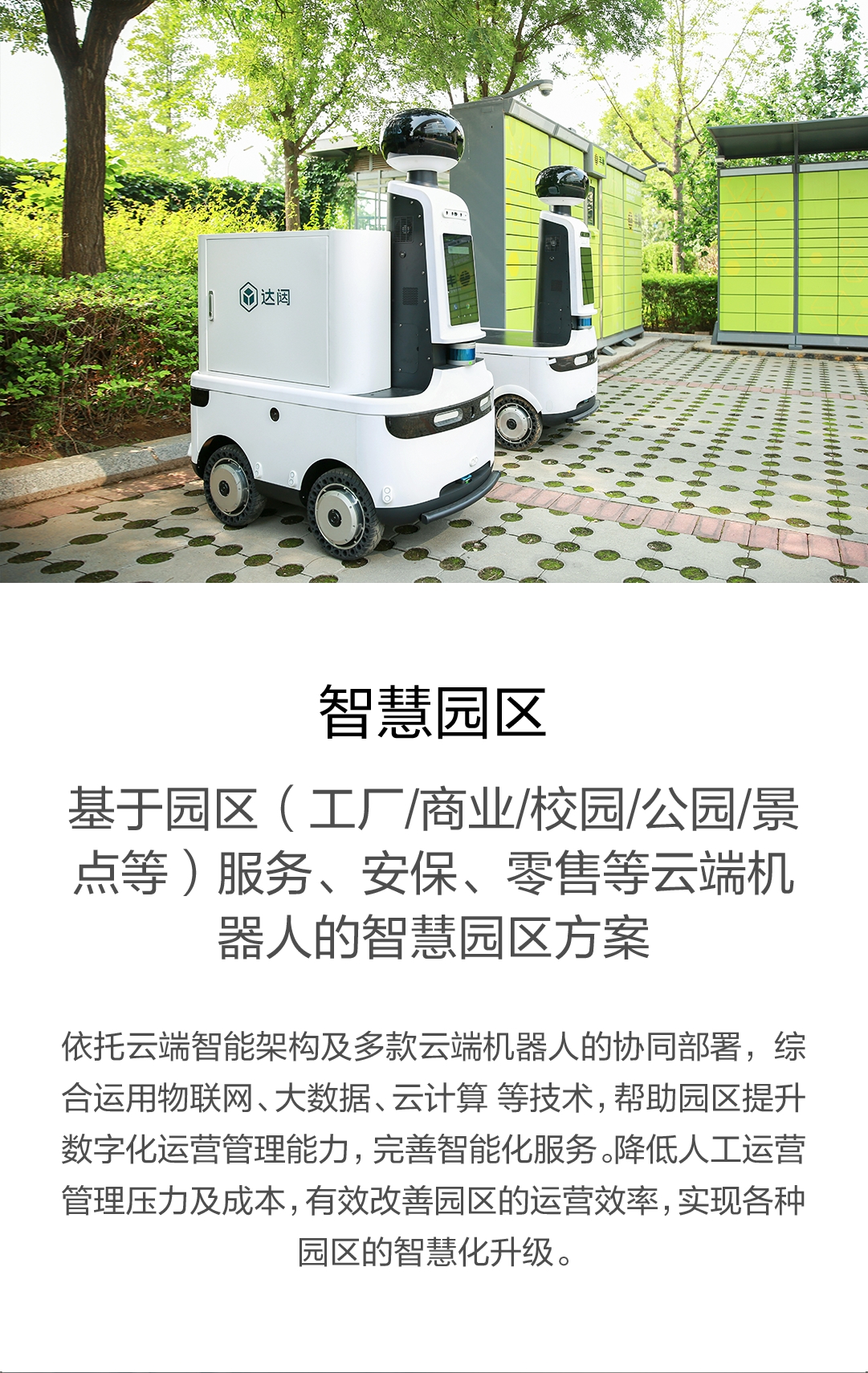 面向地產公司、物業管理等提供智能門禁、智能巡防、智能清潔、智能接待等云端機