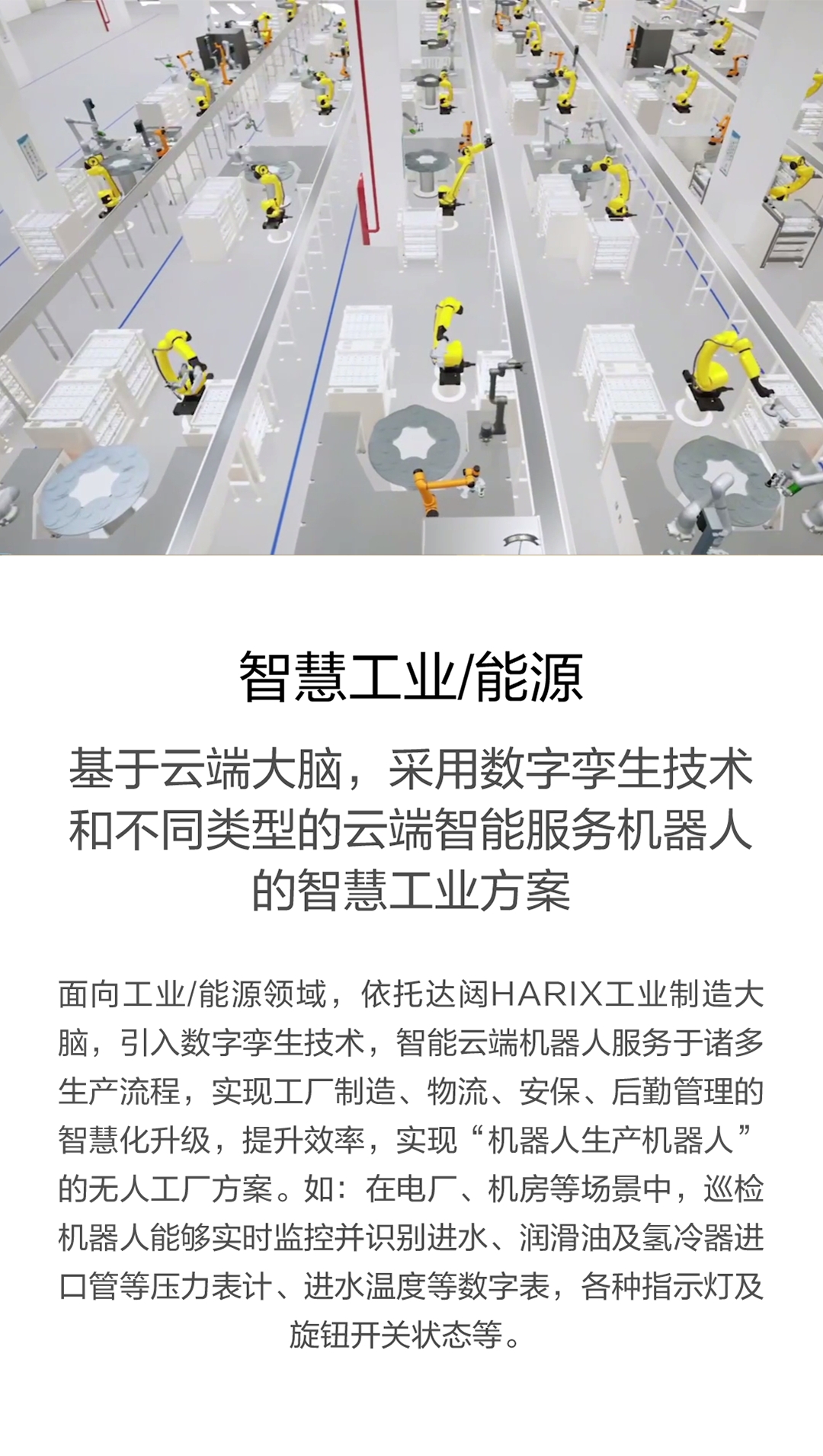 端機器人服務于諸多生產流程,實現工廠制造、物流、安保、后勤管理的智慧化