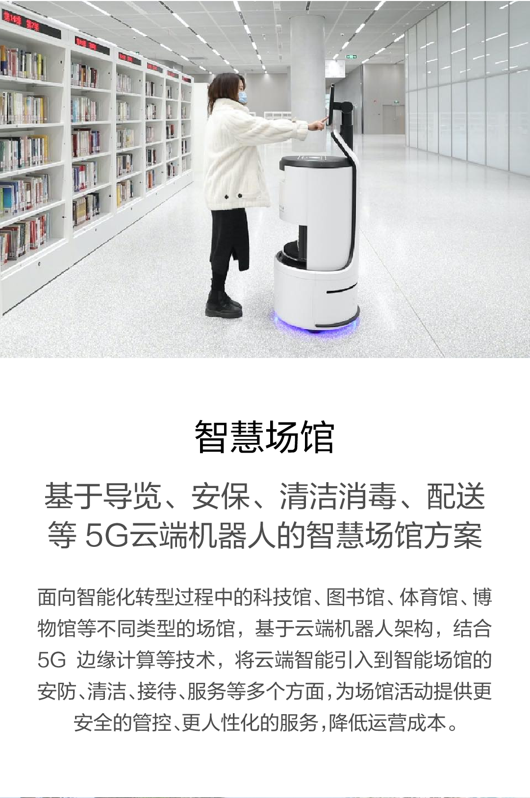 基于導覽、安保、清潔消毒、配送等 5G云端機器人的智慧場館方案